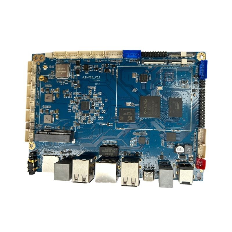 In POS terminals: The RK3576 motherboard provides strong support for devices with its powerful performance. It is equipped with an 8-core architecture processor (4-core Cortex-A72+4-core Cortex-A53) with a maximum clock speed of 2.2GHz, coupled with a 6TOPS computing power NPU, which can quickly process transaction data and run various commercial applications. Its rich interfaces, such as USB ports, Ethernet ports, etc., can easily connect external devices such as printers, barcode scanners, and cash boxes. Supports three screen display for enhanced user experience and commercial value.